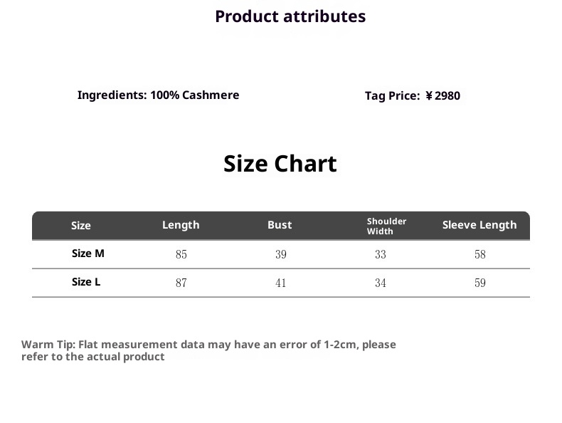 Main fabric composition: Cashmere